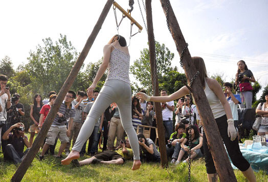 На днях юные жительницы китайской провинции Сычуань собрали вокруг себя целую толпу, демонстрируя нечто неординарное. Их кожу протыкали большими крюками, а затем подтягивали их наверх. Девушки висели в воздухе в буквальном смысле на собственной шкуре и, болтая ногами, пытались улыбаться. Зачем они это делают? Разными людьми двигают разные причины. Одни испытывают себя на смелость, другие ищут источники адреналина, третьи открывают новые горизонты духовного сознания, ну а остальные делают это ради эпатажа и потаенного мазохизма.