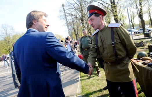 Мэр Риги Нил Ушаков ("Центр согласия") и иностранные послы возложили венки к памятнику воинам-освободителям Риги от немецко-фашистских захватчиков в парке Победы.