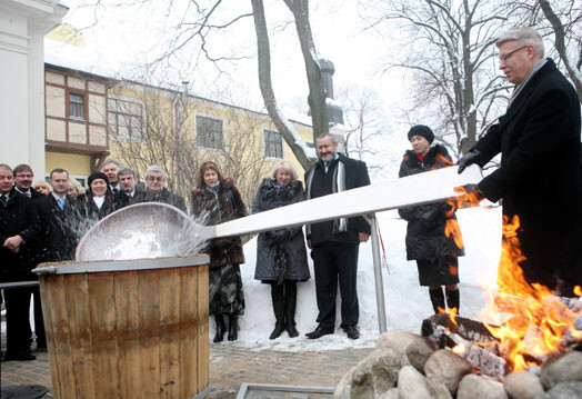 Президент Валдис Затлерс и предприниматели сегодня во дворе Рижского замка по рождественской традиции погадали на олове, и отлитые ими фигурки напророчили стране дальнейший подъем.