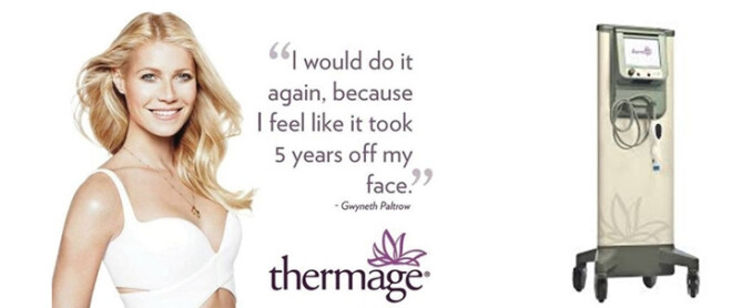 Известно также, что процедура подтяжки кожи Thermage CPT снискала особую популярность среди звезд Голливуда, которые регулярно проходят процедуру Термаж для приобретения более здорового и молодого вида. Приверженцами этой процедуры являются Мадонна, Деми Мур, Опра Уинфри, Линда Эвангелиста, Брэд Пит, Гвинет Пэлтроу и другие знаменитости.