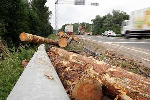 Сегодня около 9 часов на Рижской окружной дороге у пересечения с автодорогой Улброка-Огре перевернулась грузовая автомашина "Scania", перевозившая лес.