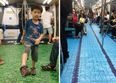 Полы вагонов метро в Тайбэе теперь напоминают плавательные бассейны, футбольные поля, гоночные трассы и баскетбольные площадки. Причем все это смотрится настолько реалистично, что пассажиры невольно поднимают ноги, чтобы не промокнуть, когда заходят в «бассейн».
