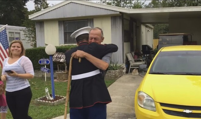 Недавно парень выдержал непростой отбор, прошел подготовительные курсы и после торжественной церемонии стал морским пехотинцем. К сожалению, приехать и повидаться с внуком дед не мог: здоровье подвело. Именно тогда Кристиан захотел преподнести старику сюрприз!