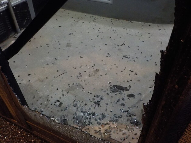 В Риге пьяный пассажир в двери автобуса выбил стекло пивной бутылкой