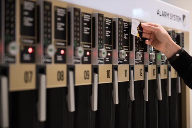 Новые гардеробы находятся на втором этаже около зоны кафе, предоставляя 30 мест для хранения в гардеробе и 12 – для зарядки устройств. Каждое отделение гардероба защищено от попадания влаги и оснащено вентиляцией. Для удобства клиентов и безопасного хранения вещей отделения оборудованы системой сигнализации Smart Alarm, и для того, чтобы открыть или закрыть отделения, можно будет использовать как RFID карты (э-талон, бесконтактные платежные карты), так и комбинацию из четырех цифр.