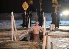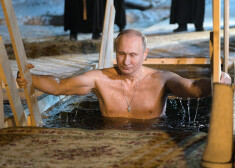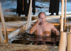 Путин окунулся в прорубь на озере Селигер во время крещенских купаний