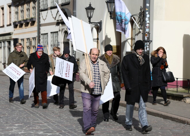 Несмотря на то, что власти не разрешили Латвийскому антинацистскому комитету проводить свое мероприятие у памятника Свободы в день легионеров, небольшая группа людей имела при себе плакаты, направленные против легионеров. В этой группе была лидер Русского союза Латвии Татьяна Жданок.