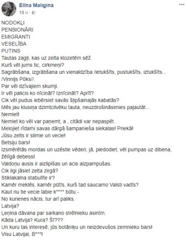 Элина Малыгина, вдова скончавшегося 7 декабря прошлого года крупнейшего акционера Olainfarm, бывшего на момент смерти 7-м самым богатым человеком Латвии Валерия Малыгина, в социальных сетях высказалась на волнующие ее темы.