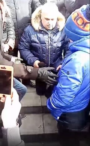 "Я хотел бы попросить у вас прощения", — и неожиданно для всех опустился на колени. Через 10 секунд он поднялся и пояснил: "Издавна на Руси люди вставали на колени, чтобы попросить прощение". Люди стали аплодировать.