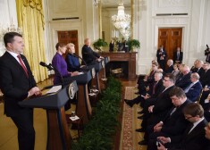 Пресс-конференция Дональда Трампа, Раймонда Вейониса, Дали Грибаускайте и Керсти Кальюлайд в Белом доме
