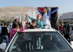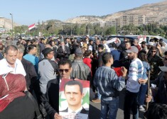 Люди на улицах столицы Сирии Дамаска после ракетного удара 14 апреля 2018 года