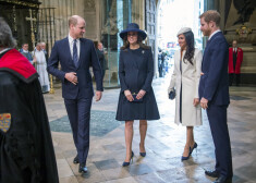 Герцогиня Кэтрин, принцы Уильям и Гарри и Меган Маркл по дороге в Вестминстерское аббатство