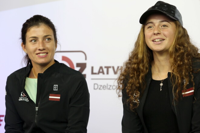 В воскресенье в первом одиночном матче Остапенко с результатом 7-5, 6-1 обыграла российскую теннисистку Анастасию Павлюченкову, а Севастова со счетом 6-2, 7-5 выиграла у Екатерины Макаровой, обеспечив Латвии победу 3-1.