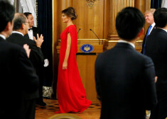 Мелания и Дональд Трамп и Брижит и Эммануэль Макрон на торжественном ужине в Белом доме в честь президента и первой леди Франции