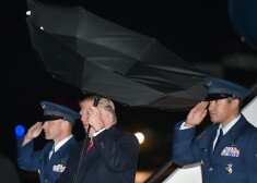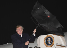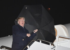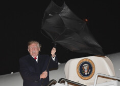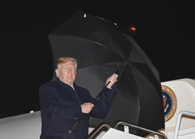 Президент США Дональд Трамп стал объектом насмешек после того, как в сети появилось видео, на котором он не может справиться зонтиком, вывернутым наизнанку порывом ветра.