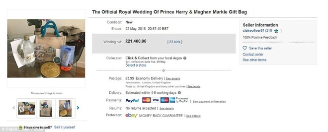Уже через несколько часов некоторые предприимчивые гости свадьбы британского принца Гарри и американской актрисы Меган Маркл выставили подаренные им наборы на интернет-аукцион.
