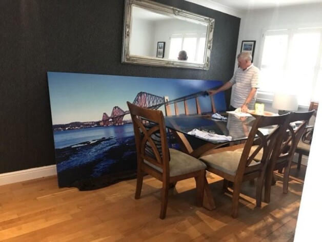 So grandad was at a sportsman’s dinner and bought a 10ft X 4ft picture of the forth rail bridge. Seemingly he forgot he could just open da blinds 🤣🤣 granny not happy with him 🤦♂️😂😂 pic.twitter.com/8kYCS4MKkU