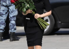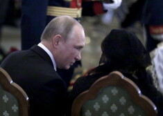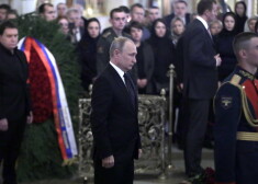 Путин возложил бордовые розы к гробу покойного, а затем подошел к вдове, чтобы выразить соболезнования.