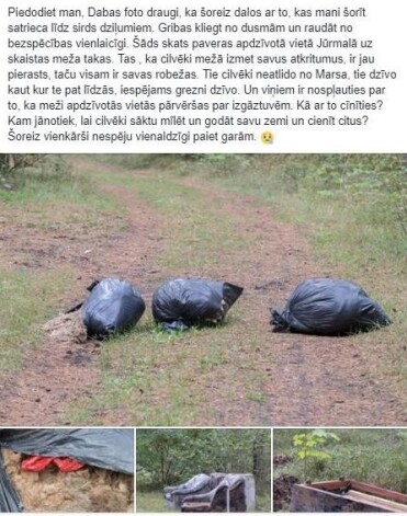 В социальной сети Facebook опубликована запись с фотографиями, на которых видно, насколько ужасный вид предстает в Юрмале, на лесной тропе.