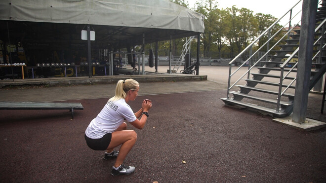Атлет Ghetto Games Монта Дишлере-Кирилко тем, кто делает свои первые шаги в спорте, рекомендует начать тренировку с небольшой разогревающей пробежки по дорожкам парка Гризинькалнса, и уже тогда делать упражнения на территории спортивного комплекса.