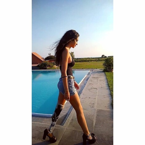 Кьяра Борди лишилась ноги в 13 лет, когда ехала на велосипеде и попала под автомобиль. Ей ампутировали ступню и часть голени. Теперь она пользуется протезами, в том числе позволяющими носить обувь на каблуках.