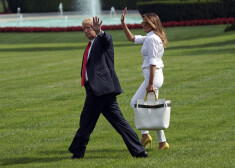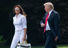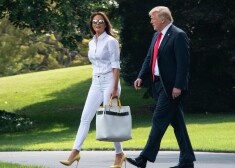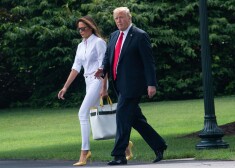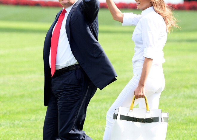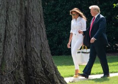 Мелания и Дональд Трамп на лужайке перед Белым домом 27 июля 2018 года