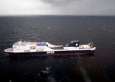 Паром Regina Seaways, на котором во вторник произошел пожар, был отбуксирован российскими судами до границы исключительной экономической зоны Литвы в Балтийском море, а потом его буксировкой занялись литовские военные корабли.