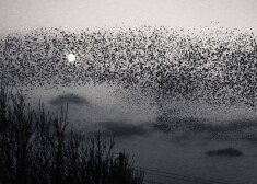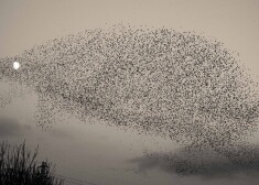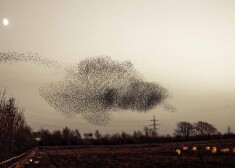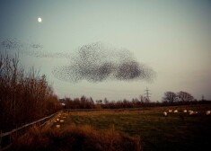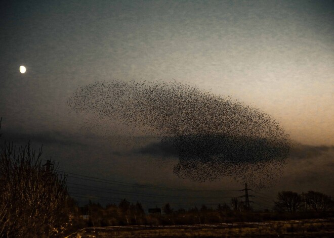 Вечером небо украсили тысячи птиц, ищущих место, где опуститься на землю. Но чтобы заметить и успеть сфотографировать 60 000 птиц, летящих строем, напоминающим форму ежа, с Луной в качестве глаза - на это нужны удача и талант.