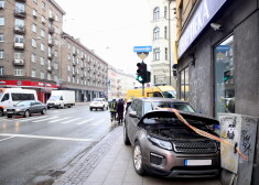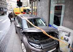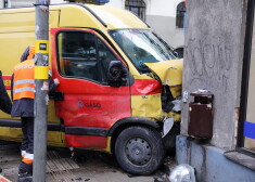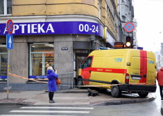 В понедельник утром в Риге микроавтобус газовой аварийной службы после столкновения с легковой автомашиной врезался в двери аптеки.