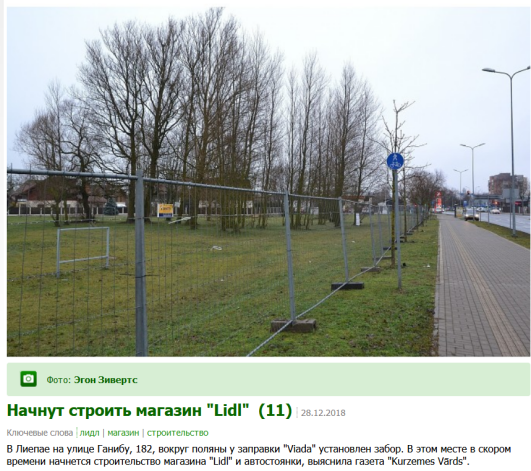 В Лиепае на улице Ганибу, 182, вокруг поляны у заправки Viada установлен забор. В этом месте в скором времени начнется строительство магазина Lidl и автостоянки, выяснила газета Kurzemes Vārds.