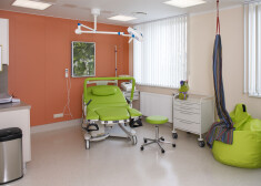 Каждая палата оборудована трансформирующимся родильным креслом, в котором можно и сидеть, и лежать, держаться за поручни, опускаться и подниматься. Кресло удобно и для роженицы, и для персонала. Для облегчения схваток женщины могут использовать подвесной слинг, фитболы, специальные облегчающие схватки стульчики. И в туалете, и в родильной комнате находятся кнопки экстренного вызова персонала. Причем персонал, который приходит к роженице, автоматически фиксирует время своего появления и проделанные манипуляции.