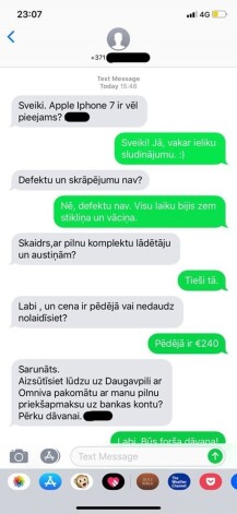 Виктор пишет на Facebook, что опубликовал объявление о продаже iPhone 7 и получил сообщение от женщины. Та сказала, что берет телефон в подарок дочери, но нужно спешить - день рождения уже в воскресенье, потому попросила отправить вещь пакоматом. Покупательница якобы была готова сделать полную предоплату, чтобы Виктор тут же выслал товар в Даугавпилс.
