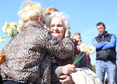 Несколько сотен человек возложили цветы к памятнику освободителям Риги в парке Победы