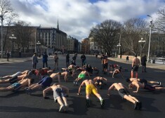 Полуголые смельчаки на "забеге голых" в Риге 9 марта 2019 года