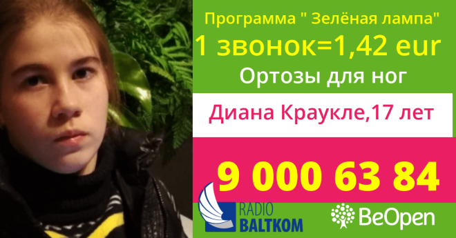 17-летней рижанке Диане Краукле с диагнозом ДЦП нужна помощь на оплату ортозов и поддерживающего компрессионного костюма. Предыдущий комплект стал мал и вышел из стороя — срочно нужен новый. Без этого Диана не может ходить и терпит боли.