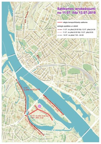 В четверг, 11 июля, уже с 8:00 и до 8:00 утра субботы, 13 июля – будет закрыто движение транспортных средств (исключая оперативный транспорт, транспортные средства с разрешениями организатора мероприятия и разрешениями, выданными Пардаугавской исполнительной дирекцией, транспортные средства жителей и предприятий, находящихся на закрытом участке улицы) на ул. Луцавсалас.
