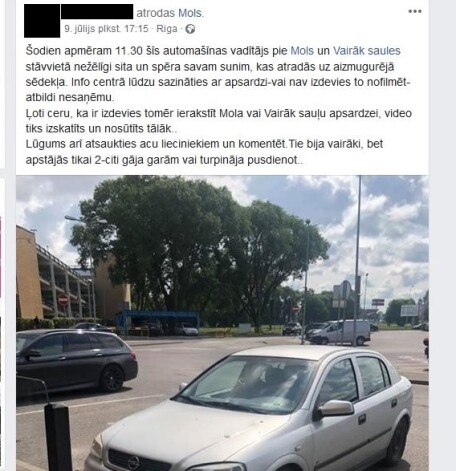 9 июля очевидица сообщила в своем публично доступном профиле Facebook, который попал в поле зрения Рижской муниципальной полиции, что некто издевается над собакой. Только из-за счастливого совпадения полицейские узнали об этом происшествии у торгового центра Mols.
