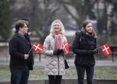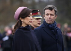 Кронпринц Дании Фредерик и принцесса Мэри с президентом Латвии Раймондом Вейонисом возлагают цветы к Памятнику свободы