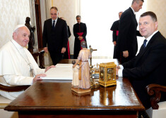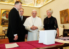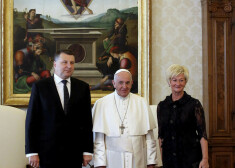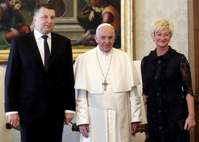 Президент Латвии Раймонд Вейонис с супругой во время встречи с папой римским в Ватикане