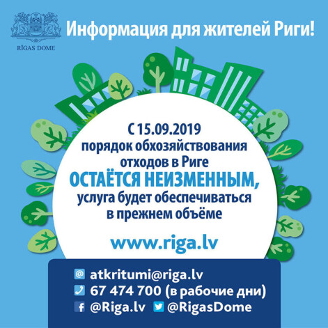 Жители в случае возникновения неясностей, связанных с вывозом отходов, могут задавать вопросы, позвонив в Департамент жилья и окружающей среды Рижской думы по телефону 67 474 700 в рабочее время (в понедельник с 8:30 до 18:00, во вторник, среду и четверг – с 8:30 до 17:00, в пятницу – с 8:30 до 16:00). Дополнительную информацию можно получить, написав на э-почту: atkritumi@riga.lv .