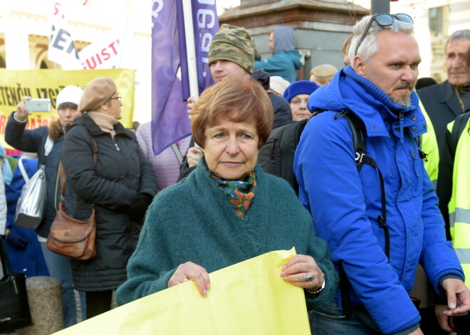 Лидер РСЛ Татьяна Жданок, обращаясь к участникам шествия протеста у Кабинета министров, подчеркнула, что русский язык нужно сохранить, в том числе для будущих поколений.