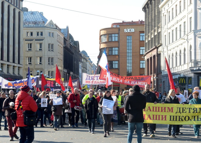 В субботу более 900 человек приняли участие в организованном Русским союзом Латвии (РСЛ) шествии в защиту образования на русском языке, которое прошло от Ратушной площади до здания правительства.