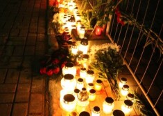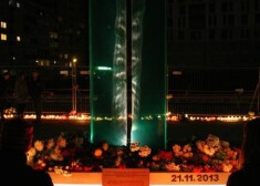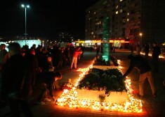 Вечером в четверг на месте, где шесть лет назад в результате обрушения магазина "Maxima" погибли 54 человека, собрались около 150 человек, чтобы почтить их память.