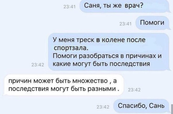 — Ой, ты опять путаешь, ты сварила мне суп и уже потом мне стало плохо!