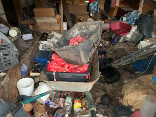 Под Кандавой изъяли 34 собаки из жутких условий; найден мумифицированный труп