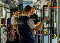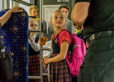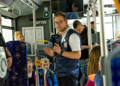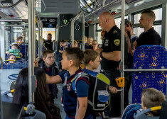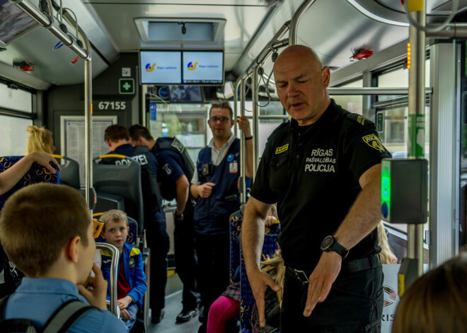 Рижская муниципальная полиция обучает школьников безопасности в общественном транспорте