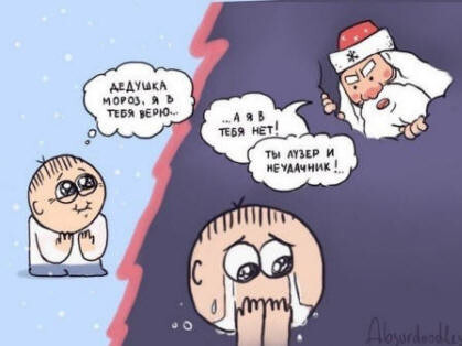 - На Новый год на улице столько пьяных Дедов Морозов будет! Как в них не верить?