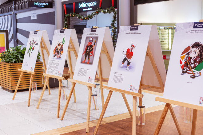 Начиная с сегодняшнего дня, 14 января, в официальном торговом центре Чемпионата мира по хоккею 2021 года “Domina Shopping” открылась выставка с эскизами талисмана предстоящих соревнований. В общей сложности на выставке представлены 20 лучших работ, отобранных латвийским оргкомитетом Чемпионата мира по хоккею 2021 года.