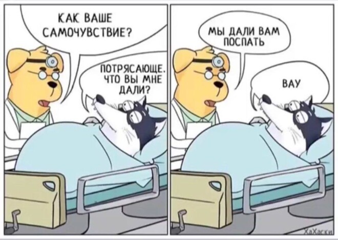 — Понимаете, — отвечает медсестра, — за окнами палаты сейчас горит сухая трава, и пожарные тушат пламя. Мы бы не хотели, чтобы вы подумали, что операция не удалась...
