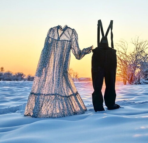 Фотограф с подругой постирала вещи, придала им форму и повесила на морозе. Женщины дождались заката и начали съемку.